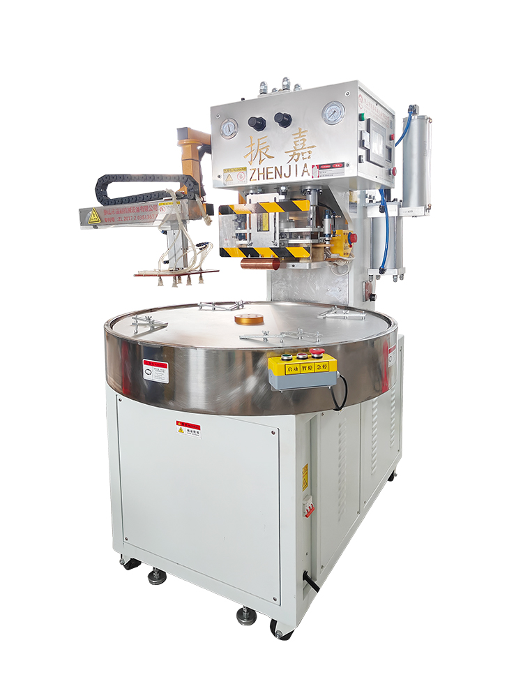 自動高周波機帶機械手,上下模對位準確,操控簡單易懂,便于維護及保養(yǎng)。自動高周波機 的圓盤為圓盤360度旋轉(zhuǎn),分為四個工作位,即每90度為一個工作位。此機的圓盤并裝有數(shù)字化變頻器,通過帶動電機控制圓盤轉(zhuǎn)動速度,數(shù)字化顯示可調(diào)節(jié)。本機配有PLC觸摸屏控制,簡單易懂,高效節(jié)能。