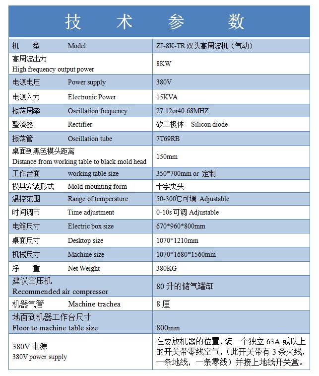 金條包裝雙頭高周波機(jī)符合歐洲第4代環(huán)保標(biāo)準(zhǔn),主要用于各種LOGO壓印,PVC袋子封口,環(huán)保材料封口切邊,以及測血壓袋,血袋,尿袋,引流袋等等醫(yī)療袋子封口切邊。