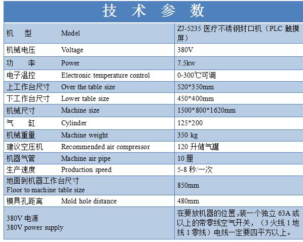 設(shè)備型號:ZJ-5235醫(yī)療吸塑封口機(PLC觸摸屏)